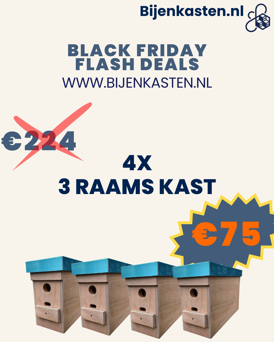 FLASH DEAL! Hechthout spaarkast (3 raams) 4X